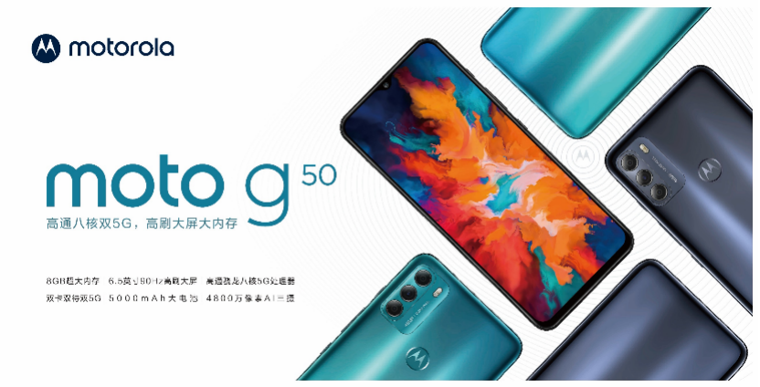 motorola g50支持NSA/SA双模5G网络,覆盖国内主流 5G 频段,更支持双5G网络同时在线;屏幕方面,采用6.5英寸影院级屏幕,支持90Hz高刷新率和180Hz高触控采样率,打造同价位越级影像体验;存储配置方面,采用8GB+128GB存储配置,运存支持3GB虚拟内存技术,实际运存高达11GB,应用多开不卡顿;存储空间采用128GB UFS 2.2硬盘级存储,数据读写快,存储空间大;拓展最大支持1TB存储,数据存储无需担忧;另外还有后置AI三摄、My UI为娱乐、办公等场景再度加码,令用户的使用与交互体验再度跃升至新境界。